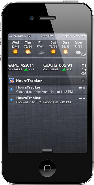 When HoursTracker knows your location, you have even less to do to keep track of how you spend your time. If you have many clients or jobs, set your job list to nearest first and never scroll again. When you arrive or leave a job location, you can get an alert, or even clock in or out automatically.